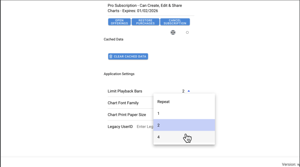 In your new chart, select the metronome icon to open the control dropdown menu.
