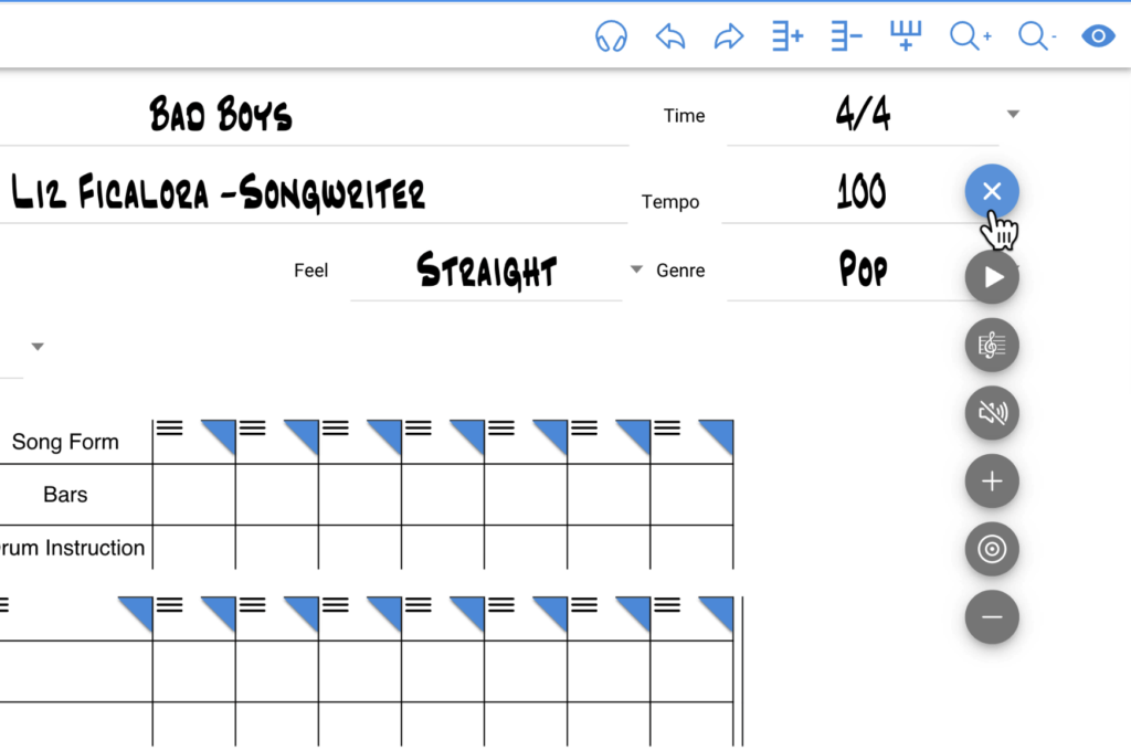 On an iPad or tablet, you can tap out the tempo with your finger using the tap icon. You can also tap the chart header to turn the metronome on and off.